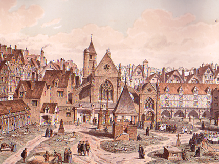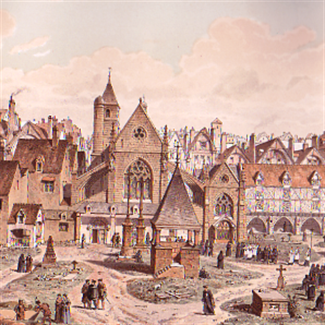Here stood Holy Innocents' Cemetary, one of the largest burial grounds in Paris.