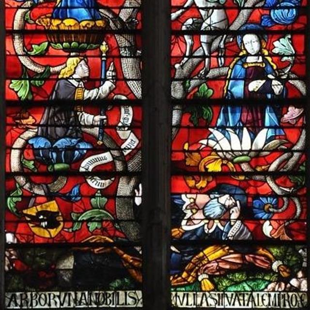 32 sDemandons de l'aide à Jessé.> Cherche son vitrail dans le bras sud du transept.